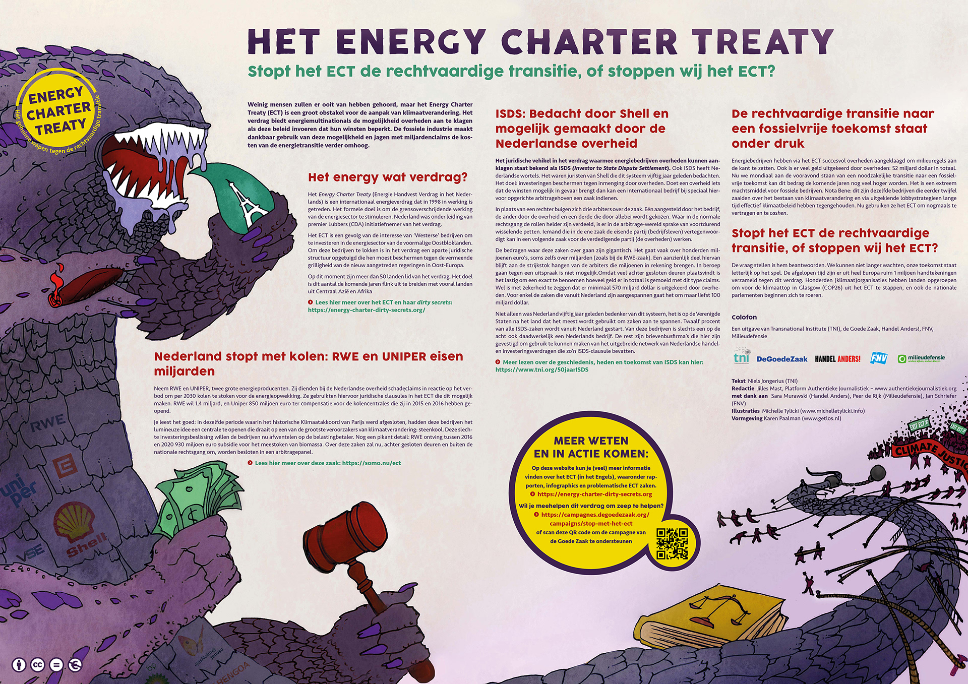 Weinig mensen zullen er ooit van hebben gehoord, maar het Energy Charter Treaty (ECT) is een groot obstakel voor de aanpak van klimaatverandering. Het verdrag biedt energiemultinationals de mogelijkheid overheden aan te klagen als deze beleid invoeren dat hun winsten beperkt. De fossiele industrie maakt dankbaar gebruik van deze mogelijkheid en jagen met miljardenclaims de kosten van de energietransitie verder omhoog.